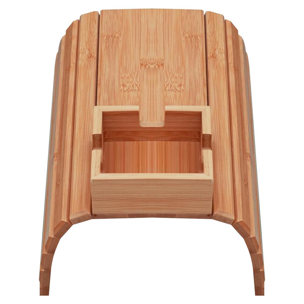 Você já derrubou bebida no sofá tentando equilibrar o copo no braço? Ou teve que esticar o corpo todo pra alcançar o controle remoto na mesinha de centro? Então este suporte de sofá com bandeja em bambu é pra você.