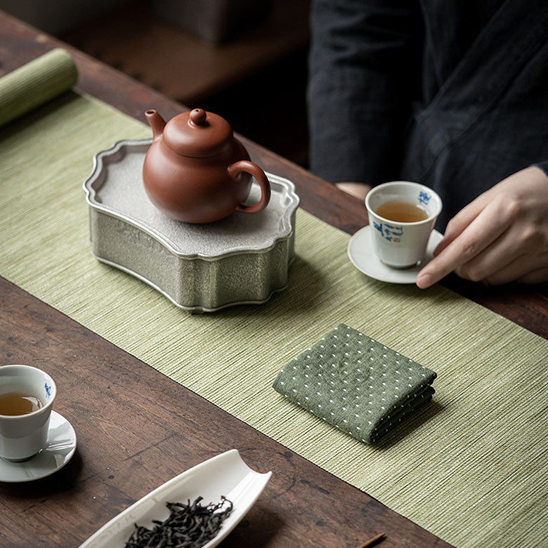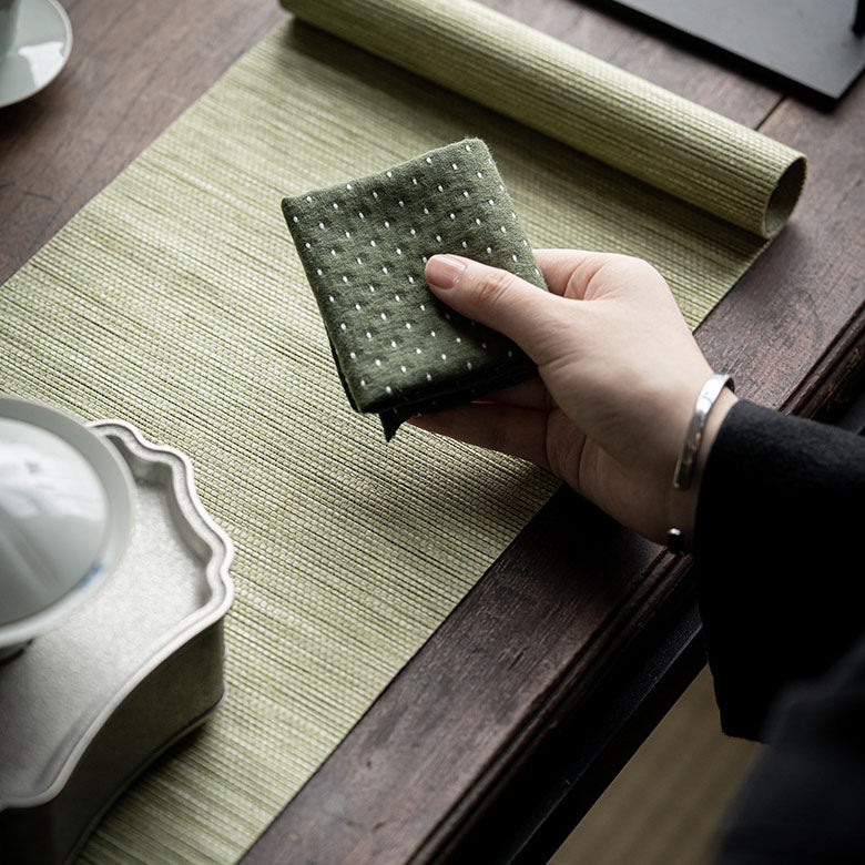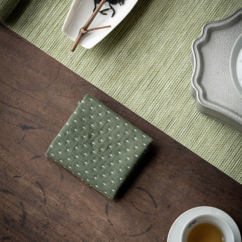 Diferente das toalhas comuns, ela é super absorvente, macia ao toque e reutilizável, garantindo durabilidade e um charme natural para o seu lar. Perfeita para sessões de chá, mas também indispensável na cozinha e na decoração.